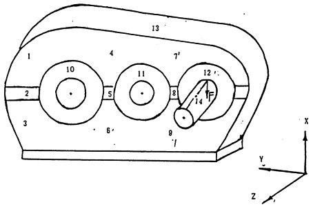 沿X向敲擊試件SHQ40上輸入軸上的14點(diǎn)并記錄測(cè)點(diǎn)12的響應(yīng)信號(hào),用于分析計(jì)算。