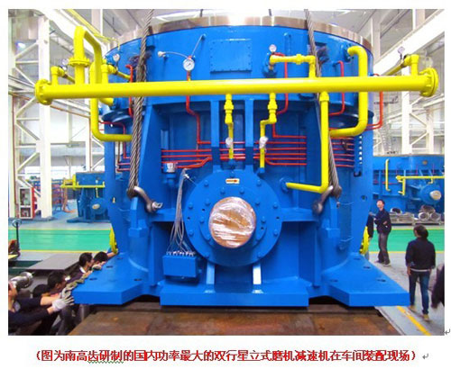 2011年11月,南京高精傳動設備制造集團有限公司(簡稱:南高齒)子公司南京高精齒輪集團有限公司自主研發(fā)制造的國內功率最大的雙行星立式磨機減速機成功試車。該減速機型號為MLXSS540,輸入功率5400kW,各項試驗性能優(yōu)秀,目前已交付客戶使用。此前,國內首臺3600kW雙行星立式磨機減速機亦是由南高齒研制。
