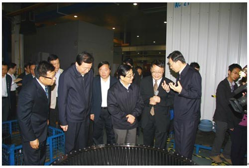 4月14日上午,在江蘇省委書記、省人大常委會主任羅志軍,江蘇省委副書記、省長李學(xué)勇及省市相關(guān)部門領(lǐng)導(dǎo)陪同下,由浙江省委書記、省人大常委會主任趙洪祝率領(lǐng)的浙江省黨政代表團來到南高齒風(fēng)電產(chǎn)業(yè)園參觀考察。集團公司董事長兼總經(jīng)理胡曰明等集團公司領(lǐng)導(dǎo)率員工熱情接待了來賓。代表團在參觀期間,詳細(xì)了解了南高齒生產(chǎn)研發(fā)、市場拓展、人才戰(zhàn)略和二次創(chuàng)業(yè)等各方面情況,對南高齒業(yè)已成為國際最大風(fēng)電裝備制造企業(yè)給予了高度評價,并充分肯定了南高齒為中國先進(jìn)制造業(yè)和綠色能源產(chǎn)業(yè)發(fā)展所起到的積極貢獻(xiàn),希望南高齒在2011年能有長足發(fā)展,二次創(chuàng)業(yè)工作越做越好。