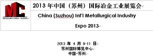 經(jīng)國(guó)家有關(guān)部門批準(zhǔn),由中國(guó)鋼鐵工業(yè)協(xié)會(huì),中國(guó)貿(mào)促會(huì)冶金行業(yè)分會(huì),冶金工業(yè)國(guó)際交流合作中心共同主辦的“2013年中國(guó)(蘇州)國(guó)際冶金工業(yè)展覽會(huì)”將于2013年4月9-11日在蘇州國(guó)際博覽中心舉辦,兩年一屆。