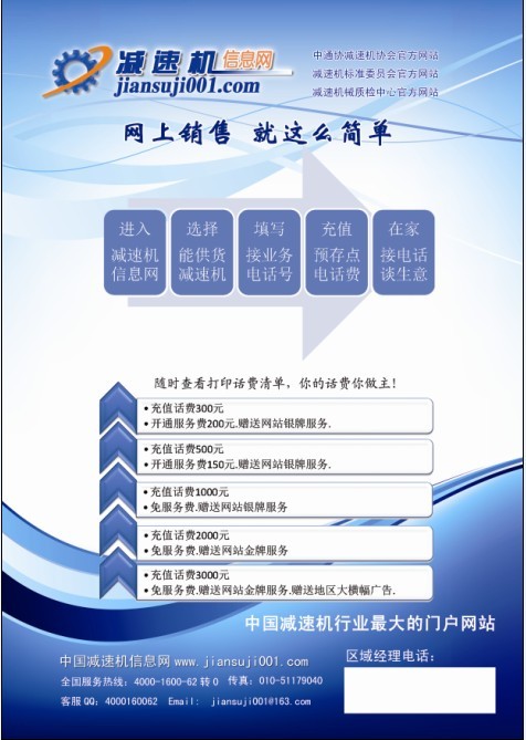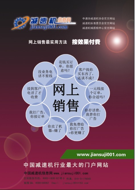 1、在減速機(jī)信息網(wǎng)會(huì)員后臺(tái)填寫(xiě)你接業(yè)務(wù)的電話(huà)號(hào)碼 2、選擇你能銷(xiāo)售的產(chǎn)品。 3、在自己帳戶(hù)里充值話(huà)費(fèi)。 4、開(kāi)通網(wǎng)上銷(xiāo)售。 5。在家等業(yè)務(wù)電話(huà),銷(xiāo)售產(chǎn)品。
