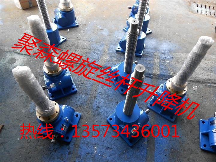 升降機(jī)按結(jié)構(gòu)型式分為:1型-絲杠同時作旋轉(zhuǎn)運(yùn)動和軸向移動;2型-絲杠作旋轉(zhuǎn)運(yùn)動。絲杠上的螺母作軸向移動。
