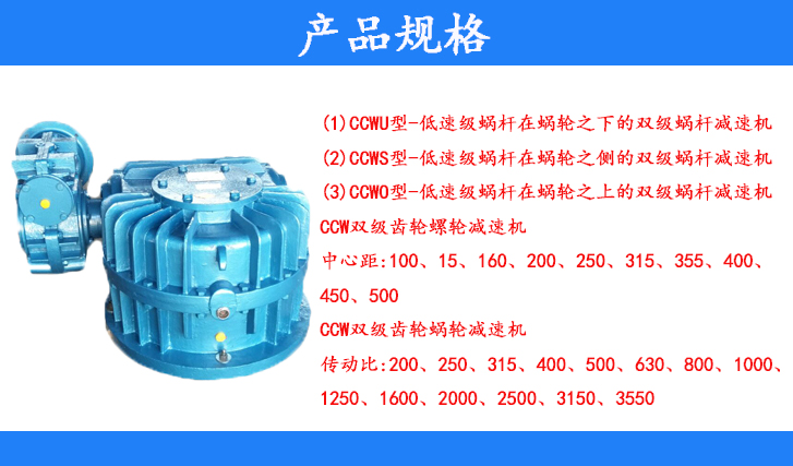 3)CCWO型-低速級蝸桿在蝸輪之上的雙級蝸桿減速機(jī);