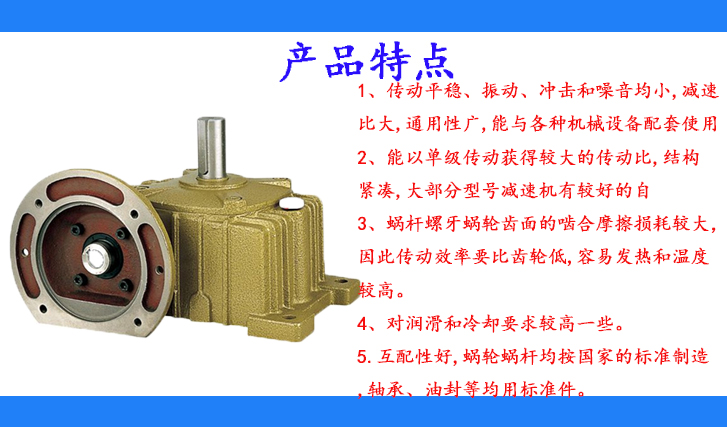 1、傳動(dòng)平穩(wěn)、振動(dòng)、沖擊和噪音均小,減速比大,通用性廣,能與各種機(jī)械設(shè)備配套使用