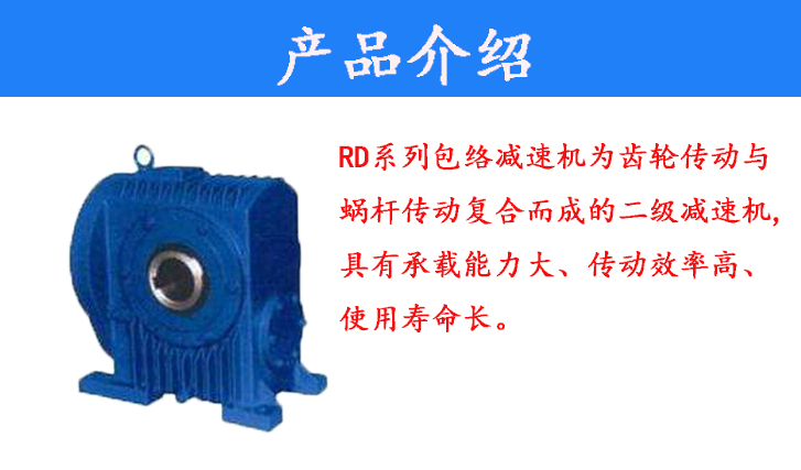 RD系列包絡(luò)減速機(jī)為齒輪傳動與蝸桿傳動復(fù)合而成的二級減速機(jī),具有承載能力大、傳動效率高、使用壽命長。