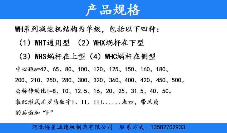 減速器型號(hào)中的“W,H、T、X、S、C”分別為“蝸、弧,通,下,上,側(cè)”的漢語(yǔ)拼音字頭,組合為
