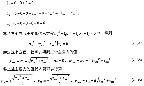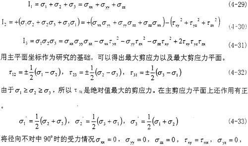 σzx=τrod分別代入(4-29)(4-30)(4-31),得到具體的三個(gè)不變量的值