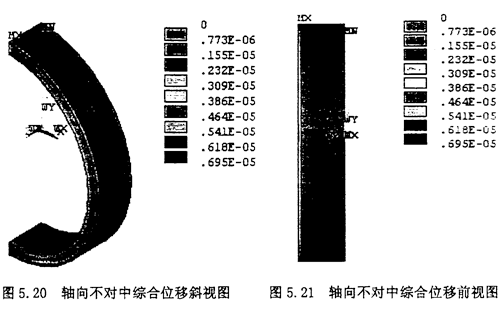 軸向不對中時,根據實際情況取中量為△ax=5mm,則可以認為外端面沿z軸方向的位移為5mm,如圖5.18所示。產生的附加的軸向載荷按照。選擇選擇Main Menu>>Solution>Define