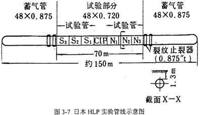 全尺寸實(shí)驗(yàn)使用甲烷、空氣或者氦氣作為壓力介質(zhì)。實(shí)驗(yàn)分為地上管線和埋地管線兩種。由于按照原來的止裂預(yù)測方法己經(jīng)不能保證現(xiàn)代高強(qiáng)度高韌性管線的延性斷裂止裂性能,20世紀(jì)80年代美國天然氣協(xié)會(huì)AGA委托包括美國SwRI和意大利CSM在內(nèi)的多家機(jī)構(gòu)進(jìn)行了合作研究,試圖得到一種理論上可靠,實(shí)驗(yàn)證明可行的防止管線延性斷裂長程擴(kuò)展的方法。
