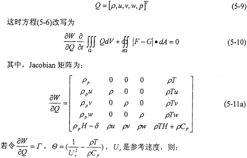 非定常可壓縮的射流滿足如下的積分形式的N-S方程: