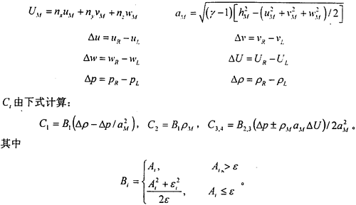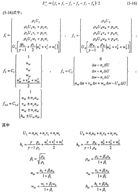 便可方便的得出一階精度格式。顯然,一階精度格式對于粘流的計算來說是沒有應(yīng)用價值的。為了構(gòu)造高精度格式,必須尋求確定LR的高精度方法。對于二階精度格式,LR的表達(dá)式可由下式確定: