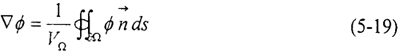 在(5-18)式,我們用到了原始變量的梯度(▽i和(▽j。在非結(jié)構(gòu)網(wǎng)格中,物理量的梯度可以由高斯積分公式求得。令ф代表任一變量,則