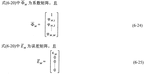 所謂參數(shù)估計(jì),是指根據(jù)經(jīng)檢驗(yàn)和預(yù)處理后的時(shí)序按某一方法估計(jì)出式(6-19)中M,1,M,2M,3,…,M,M這M+1個(gè)參數(shù)。AR(M)模型的參數(shù)估計(jì)方法有許多種,較易用計(jì)算機(jī)編程實(shí)現(xiàn)的方法是Marple參數(shù)遞推估計(jì)法。