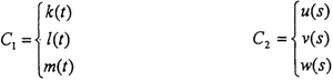 假設(shè)M點(diǎn)是兩軸的嚙合點(diǎn)(運(yùn)動(dòng)曲線C1和C2的交點(diǎn),也就是傳力點(diǎn))假設(shè)初始條件為:當(dāng)時(shí)間t=0時(shí),