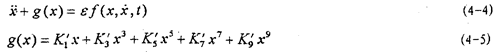 對于形如(4-4)式這樣的強非線性系統(tǒng),李驪提出了一種新的頻閃法,近年,杜惠英和李驪用頻閃法研究了含有x5項強非線性系統(tǒng)的共振解和亞諧解雖然原則上該方法可適用于任意階強非線性系統(tǒng),但是在實際應(yīng)用中對更高階項會遇到積分計算問題,大大地限制了這種方法用于高階強非線性系統(tǒng)的研究。為了解決積分計算的困擾,本章提出一種新的方法—頻閃—諧波平衡法。