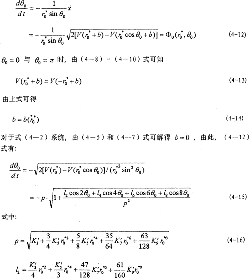 目前文獻上的一些方法對于弱非線性系統(tǒng)是有效的,而對于(4-2)式的強非線性系統(tǒng)則遇到了麻煩。由于描述非線性振動系統(tǒng)的微分方程種類繁多,沒有普遍的解法,因此,仍然只有極少非線性振動方程可求得精確解?尚械霓k法是針對不同非線性振動方程的特點尋求一些近似數(shù)值解法。為研究方便,將(4-2)式進一步寫成以下形式:
