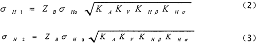 小輪和大輪的計(jì)算接觸應(yīng)力σH1、σH2分別按下述兩式確定: