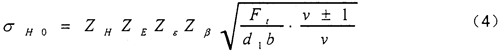 節(jié)點(diǎn)處計(jì)算接觸應(yīng)力的基本值,N/mm2,用下式計(jì)算: