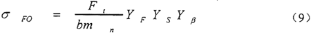 σFO——齒根應(yīng)力的基本值,N/mm2,對(duì)于大、小齒輪應(yīng)分別確定。