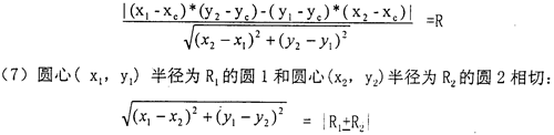 (6)直線((x1,y1),(x2,y2))和圓心(xc,yc)半徑為R的圓相切: