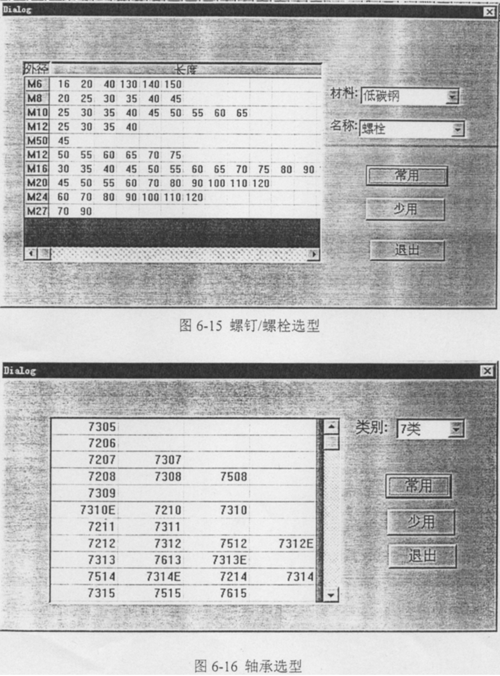 針對(duì)企業(yè)的實(shí)際需求,在庫(kù)存-設(shè)計(jì)模塊,控制設(shè)計(jì)人員對(duì)螺釘/螺栓(見圖6-15)和軸承(見圖6-16)的選型。盡可能減少零件的庫(kù)存量,從而達(dá)到合理利用企業(yè)的資源。