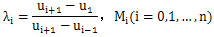 (1-λi)Mi-1+2MiiMi+1=6f[ui-1,ui,ui=1],i=1,2,…,n-1。        (2-6)