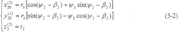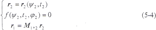 令φ1=φ2=φ,將(5-2)式及由(5-8)式解出的t2代入(5-9)式,即可得到以ψ2、φ為參變量的外齒輪齒面方程:
