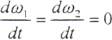如果在t=0的瞬時,由于干擾載荷的作用,輪齒的變形量增大△δ,則齒上的載荷也獎增加△Fn,當轉(zhuǎn)矩M1、M2為定值時,由齒輪的平衡條件可知,齒輪的角速度ω將發(fā)生周期性變化,而載荷和變形也以同一頻率變化。由(5-17)式和(5-18)式,得
