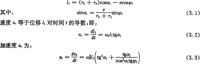 推桿在工作行程開始時,l1值為最小,這時lmin=Tb+Tz-e,α1=0,φ1=0,vr=0,