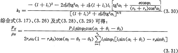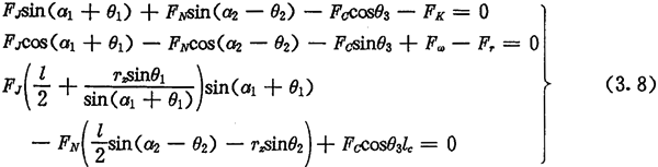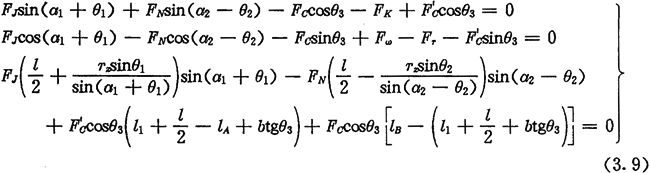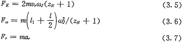 由于考慮了慣性力,所以力Fc不通過交點Q,lc也是一個未知數。若根據輸入功率確定出FJ,則方程組(3.8)只剩下FN、FC及l(fā)c三個未知數了。