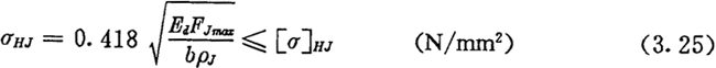 激波器與內滾子的接觸,顯然是兩個圓柱體的相壓接觸,由彈性力學可知,在接觸處產生的最大接觸應力σHJ可由下面的赫茲應力公式來計算: