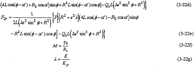 由方程式(3-15)~(3-19)和(3-20)可以完全確定雙軸輸入式的一齒環(huán)內(nèi)齒行星傳動機(jī)構(gòu)的動力參數(shù)。各動力參數(shù)中除嚙合力只與負(fù)載大小有關(guān)外,其余載荷均與傳動機(jī)構(gòu)的幾何參數(shù)L1,L2,β1,β2,R1,R2,α′,α″等因素有關(guān)。故可以通過調(diào)整這些參數(shù),以達(dá)到滿足結(jié)構(gòu)、載荷要求。