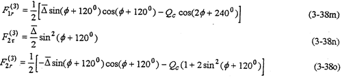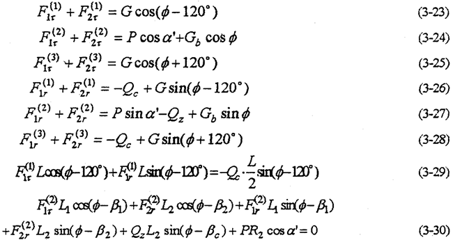 以三相并列雙曲柄機(jī)構(gòu)一齒環(huán)內(nèi)齒行星傳動機(jī)構(gòu)為例(見圖1-3圖3-3),帶行星齒板的雙曲柄機(jī)構(gòu)與另外兩套雙曲柄機(jī)構(gòu)相位差互為120°。疫帶行星齒板轉(zhuǎn)動的相位角為φ,則另兩相雙曲本機(jī)構(gòu)的相位角為φ-120°及φ+120°由動力分析基本方程,取P(1)=P(3)=0,P(j)=P得