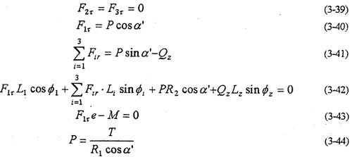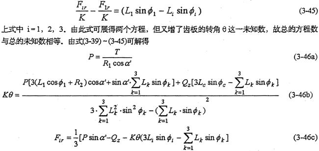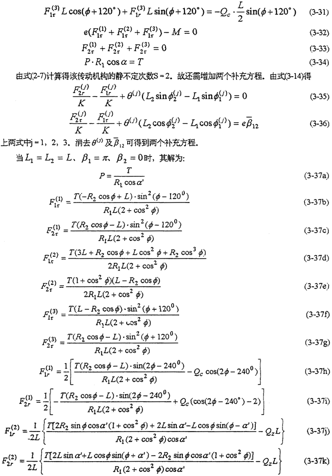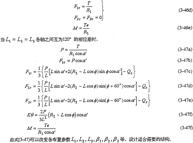 由以上兩種情況的解式(3-21)及式(3-22)可知,內(nèi)齒行星傳動機(jī)構(gòu)的行星軸承載荷與軸承接觸剛度K及分流機(jī)構(gòu)齒輪的接觸剛度Kp有關(guān)。分流機(jī)構(gòu)既傳遞動力又傳遞運(yùn)動,使機(jī)構(gòu)在任何時候都具有確定的運(yùn)動,沒有機(jī)構(gòu)的死點(diǎn)位置,這從各解的結(jié)果可以看看無論φ怎么變,各載荷值均不會出現(xiàn)無窮大情況。