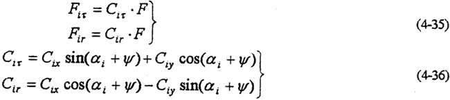將軸承載荷加以處理后,就可以得到行星軸承與偏心套接觸點的載荷與軸承總載荷的關(guān)系。如圖4-7所示,若偏心套與軸承的接觸中心與坐標(biāo)軸r的角為φ。則各節(jié)點載荷在r和τ方向的分量由式(4-29)和式(4-32)變換得
