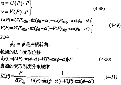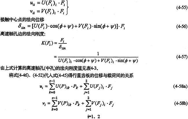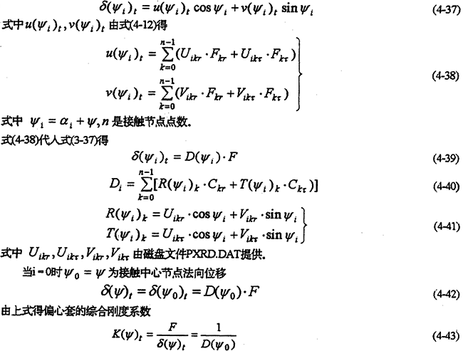 式(4-35)中的F是行星承軸載荷。偏心套外圓周邊某接觸點的法向位移