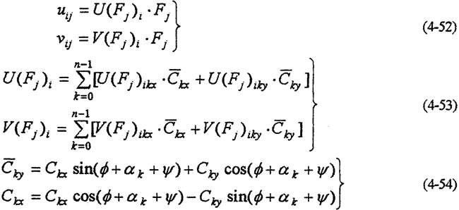式(4-51)~(4-53)中U(Fj)ikx,U(Fj)iky,V(Fj)ikx,V(Fj)iky為行星齒板柔度系數(shù)的值,由磁盤文件提供計算。Ckx,Cky由式(4-30)及式(4-33)計算。