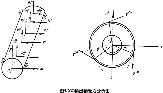 根據(jù)對三環(huán)減速器的靜不定次數(shù)計算,當單軸輸入(n=1)時,S=4,雙軸輸入(n=2)時,S=5。故應根據(jù)輸入形式,由位移協(xié)調節(jié)器條件增加4個或5個動力分析補充方程。