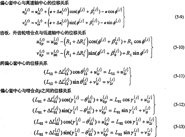 當只考慮行星軸承變形和內齒圈變形時,式(5-18)及(5-19)就變成(3-11)、(3-14)。