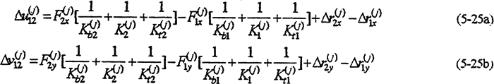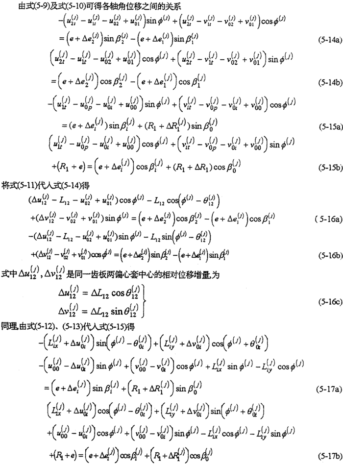 式(5-18)中的△u(j)12,△u(j)12為機構變形后兩偏心套中心之間的長度L12產生的增量分量,它包括齒板兩高速軸孔之間的相對變
