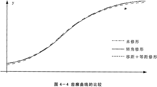 以上三種齒廓修形法中,轉(zhuǎn)角修形法不僅機(jī)構(gòu)調(diào)整麻煩,而且不能單獨(dú)使用,然而采用適當(dāng)?shù)囊凭嘈扌瘟亢偷染嘈扌瘟肯嘟M合的方法可使磨削出的齒廓與用轉(zhuǎn)角修形法得到的齒廓相接近,因此在傳動(dòng)中可使多對(duì)齒同時(shí)嚙合,并且在齒頂和齒根處均有間隙存在,采用這樣的修形方法磨削擺線輪比轉(zhuǎn)角修形法方便得多。