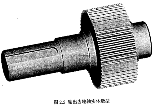 圖2.5為本文雙環(huán)減速器輸出齒輪軸實(shí)體造型圖。圖2.6為本文雙環(huán)減速器實(shí)驗(yàn)樣機(jī)的裝配圖的俯視圖。本文的雙環(huán)減速器實(shí)驗(yàn)樣機(jī),采用一種新型的環(huán)式行星傳動(dòng)裝置。