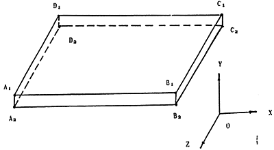 底板上上表面四個(gè)角點(diǎn)A1、B1、C1、D1和下表面四個(gè)角點(diǎn)A2、B2、C2、D2沿x向、y向和z向的平移自由度為零,旋轉(zhuǎn)自由度任意。如圖3-10所示。