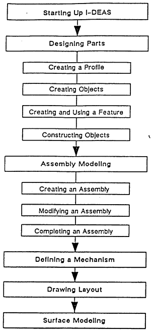 在SUN工作站上使用I—DEAS軟件的Solid—Modeling模塊對SHQ40箱體進(jìn)行實(shí)體建模,其主要操作規(guī)程如圖3-4所示。