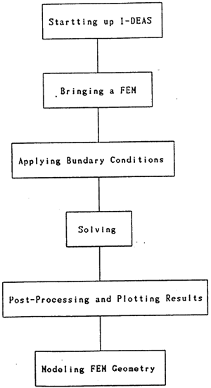 在SUN工作站上使用I—DEAS軟件中的有限元模塊(FE—Modeling—and—Analysis)對SHQ40箱體進(jìn)行有限元分網(wǎng),其具體操作規(guī)程如圖3-7示。