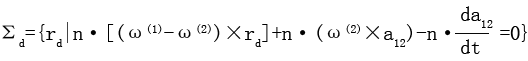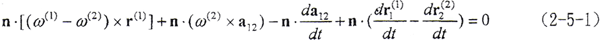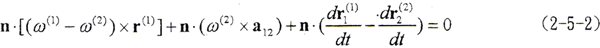 由(2-5-1)式知,它是r(1)、r(2)需滿足的微分方程。Σ1、Σ2在接觸的最初階段,接觸參考點在接觸力作用下,隨著Σ1、Σ2的相對運動,變形逐漸增大,在此階段,