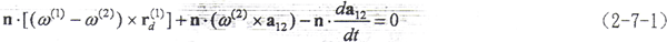 ,這時的接觸參考點為決定兩曲面運動關(guān)系的點,受力達到平衡,我們稱這樣的接觸參考點為變形最大點。將這樣的點之徑矢記為rd(1)、rd(2),(2-5-1)式就成為