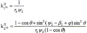 式中 ψ2——齒面參變量,設(shè)α2為齒面某一點(diǎn)K處的壓力角,則有ψ2=tgα2。