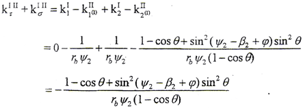 在齒寬方向,當(dāng)rg→∞或rg/t1=cosα?xí)r,k1Ⅰ→0,對(duì)鼓形齒輪而言,這兩種情況都不存在,因此總存在k1Ⅰ>k1Ⅱ,即在齒寬方向不存在曲率干涉。