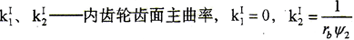 經(jīng)求解得到內(nèi)齒輪齒面的兩個(gè)法曲率主值為